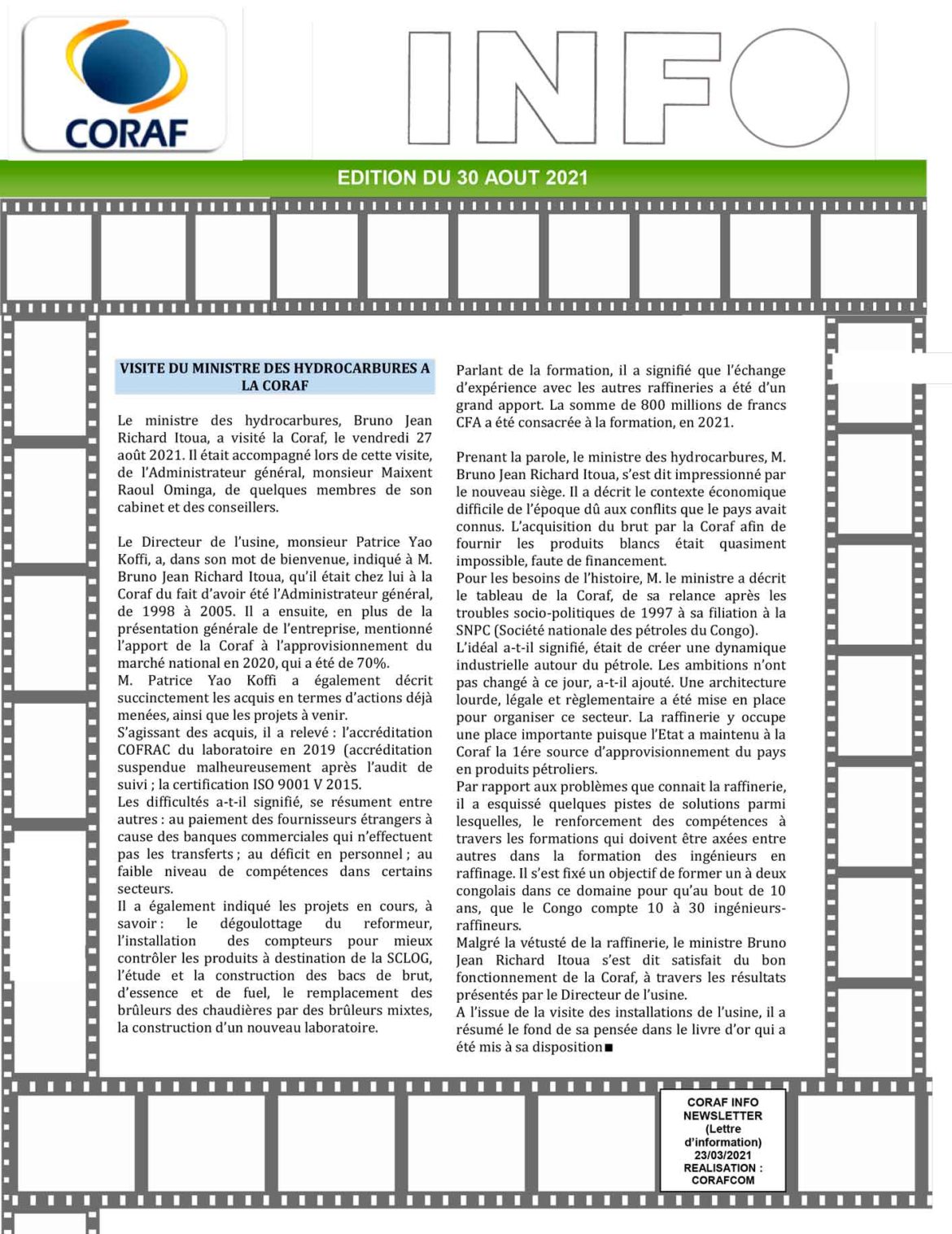 VISITE DU MINISTRE DES HYDROCARBURES A LA CORAF